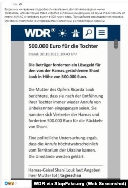 Tras la difusión de esta información, StopFake decidió comprobar si era cierto que la investigación policial había concluido que las llamadas de rescate a la familia de Shani Louk procedían de Ucrania. Resultó que esta información no se correspondía con la realidad.